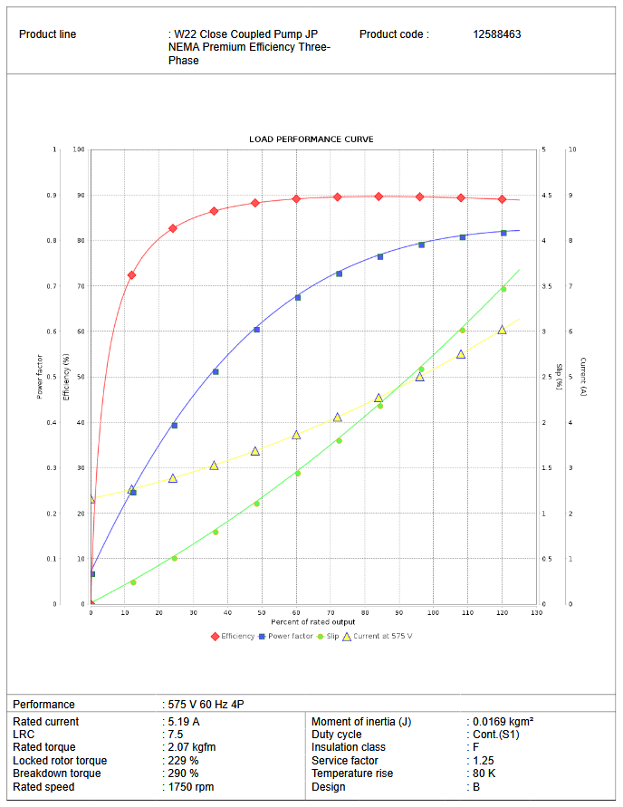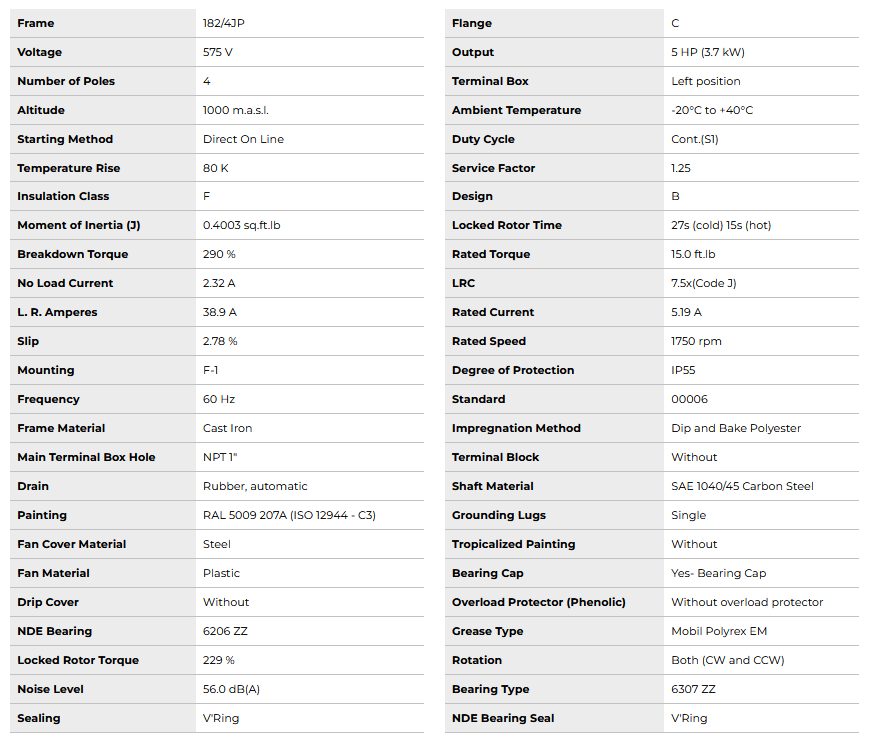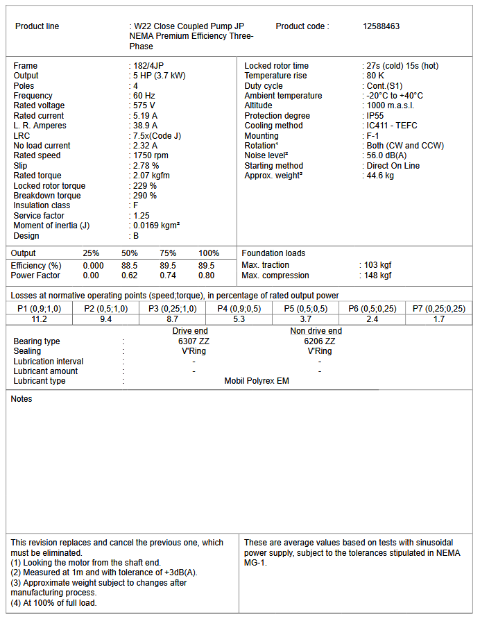 JP005504NPW22, W22 Close Coupled Pump JP NEMA Premium Efficiency 5Hp 1750 RPM 4P 182/4JP 3Ph 575 V 60 Hz IC411 - TEFC - Foot-mounted