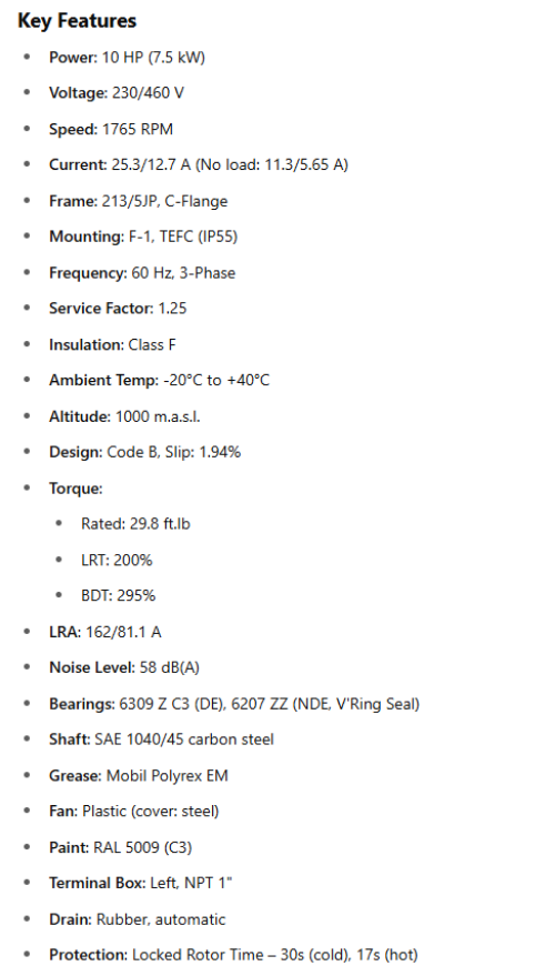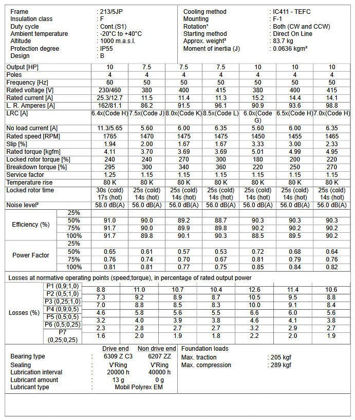 Protection: Locked Rotor Time – 30s (cold), 17s (hot)