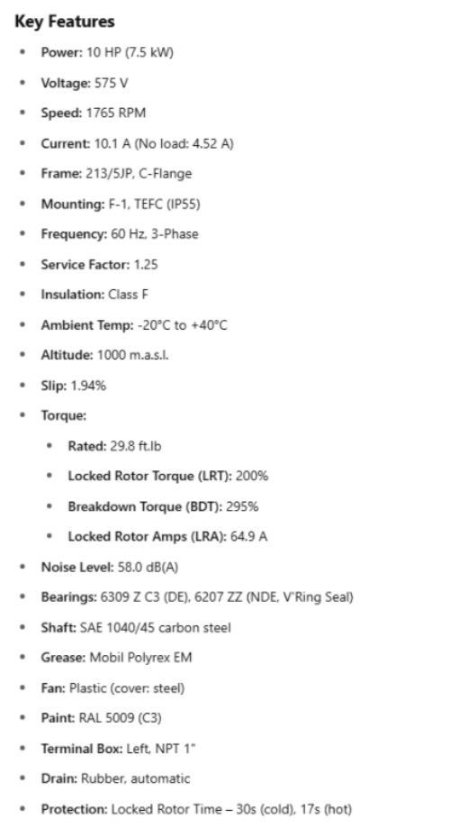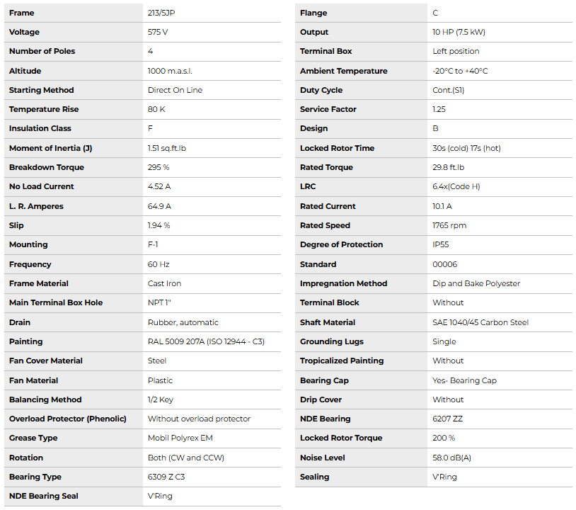 • Bearings: 6309 Z C3 (DE), 6207 ZZ (NDE, V'Ring Seal)