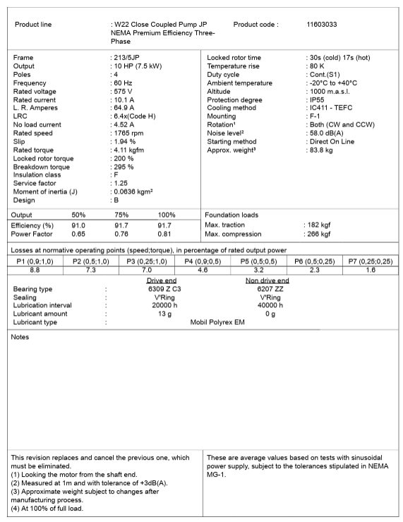 JP010504NPW22, W22 Close Coupled Pump JP NEMA Premium Efficiency 10Hp 1765 RPM 4P 213/5JP 3Ph 575 V 60 Hz IC411 - TEFC - Foot-mounted