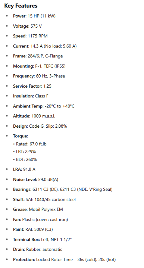 Protection: Locked Rotor Time – 36s (cold), 20s (hot)