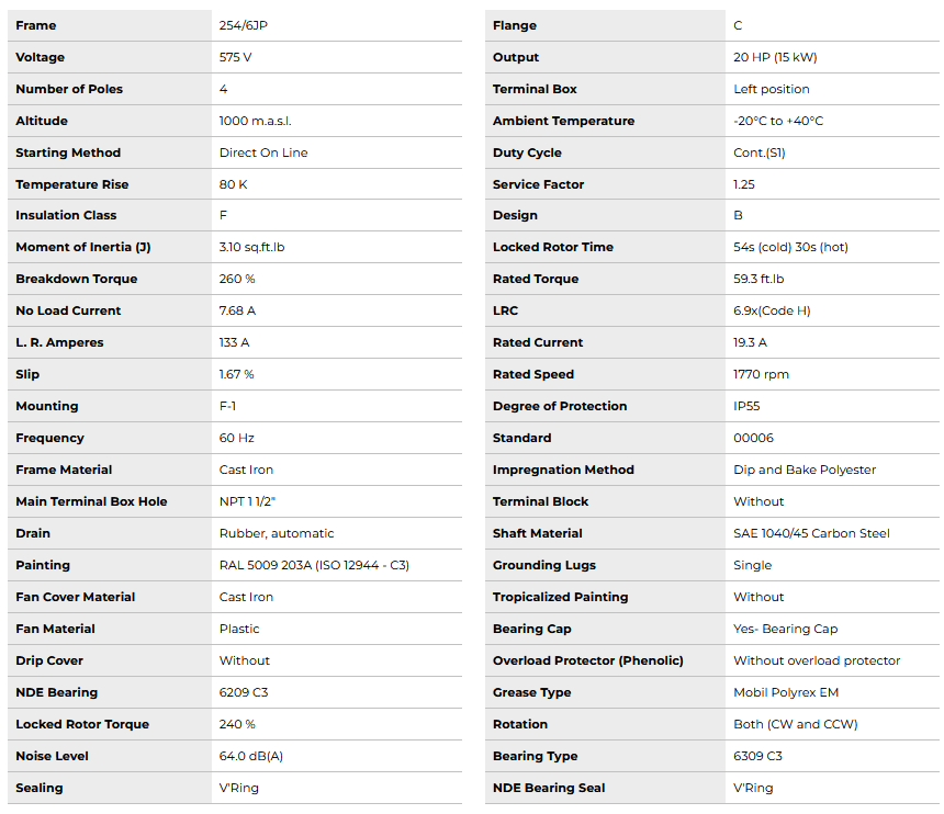 JP020504NPW22, W22 Close Coupled Pump JP NEMA Premium Efficiency 20Hp 1770 RPM 4P 254/6JP 3Ph 575 V 60 Hz IC411 - TEFC - Foot-mounted