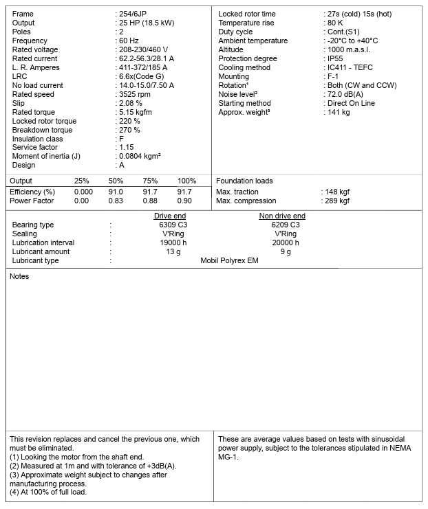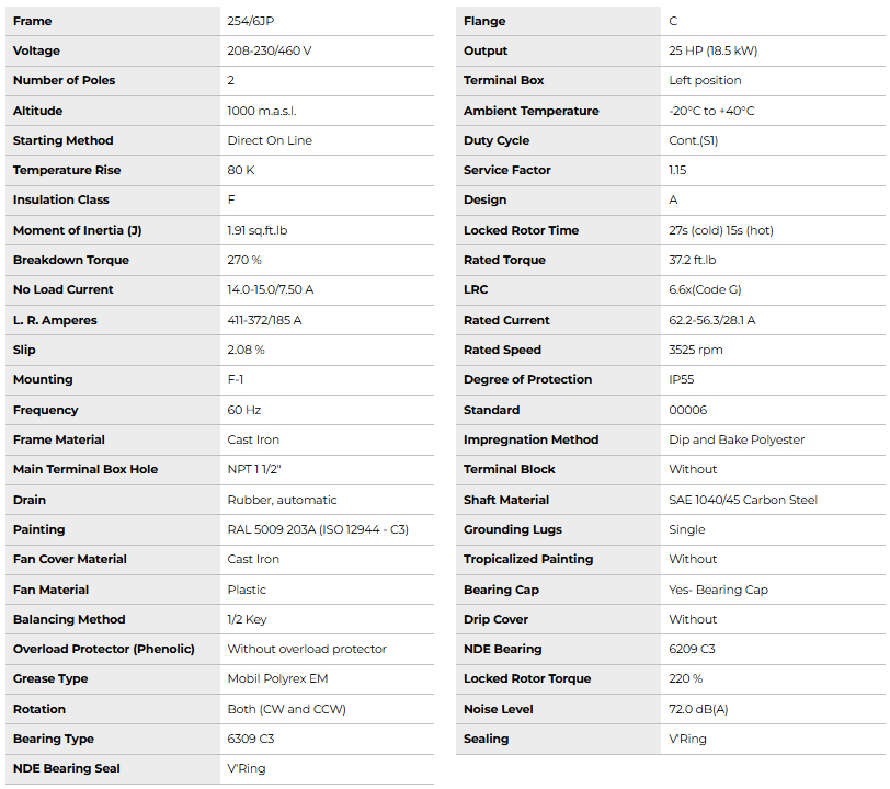 JP025402NPW22256JP, W22 Close Coupled Pump JP NEMA Premium Efficiency 25Hp 3525 RPM 2P 254/6JP 3Ph 208-230/460 V 60 Hz IC411 - TEFC - Foot-mounted