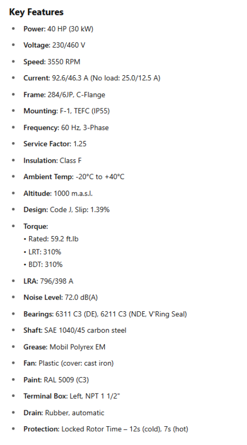 • Bearings: 6311 C3 (DE), 6211 C3 (NDE, V'Ring Seal)