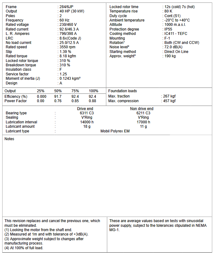 JP040402NPW22286JP, W22 Close Coupled Pump JP NEMA Premium Efficiency 40Hp 3550 RPM 2P 284/6JP 3Ph 230/460 V 60 Hz IC411 - TEFC - Foot-mounted