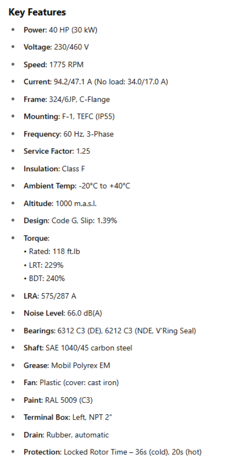 Protection: Locked Rotor Time – 36s (cold), 20s (hot)