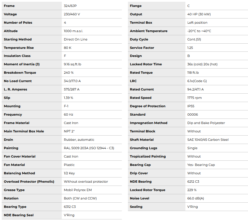 JP040404NPW22, W22 Close Coupled Pump JP NEMA Premium Efficiency 40Hp 1775 RPM 4P 324/6JP 3Ph 230/460//380 V 60//50 Hz IC411 - TEFC - Foot-mounted