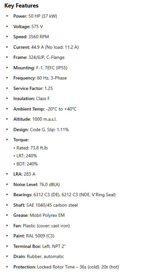 • Bearings: 6312 C3 (DE), 6212 C3 (NDE, V'Ring Seal)