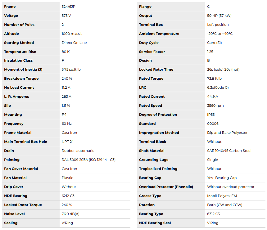 JP050502NPW22, W22 Close Coupled Pump JP NEMA Premium Efficiency 50Hp 3560 RPM 2P 324/6JP 3Ph 575 V 60 Hz IC411 - TEFC - Foot-mounted