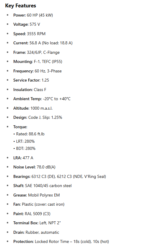 Frequency: 60 Hz, 3-Phase