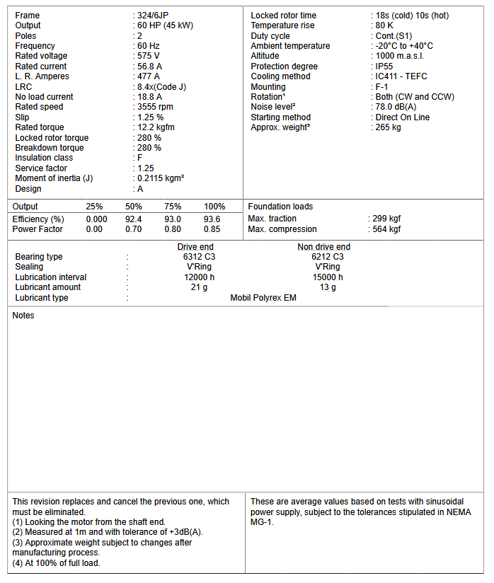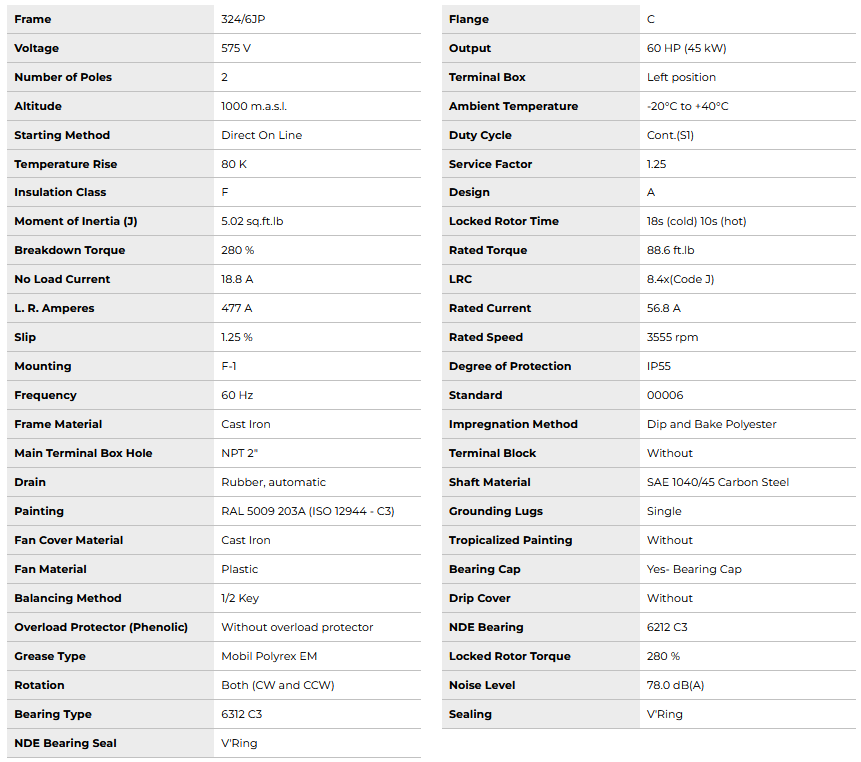 JP060502NPW22326JP, W22 Close Coupled Pump JP NEMA Premium Efficiency 60Hp 3555 RPM 2P 324/6JP 3Ph 575 V 60 Hz IC411 - TEFC - Foot-mounted