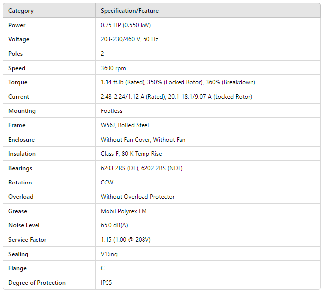 JT.75402W01DOE, Rolled Steel Jet Pump - J type Premium Efficiency 0.75Hp 3440 Rpm 2P W56J 3Ph 208-230/460//190-220/380-415 V 60 Hz IC411 - TEFC - Footless is backordered and will ship as soon as it is back in stock.
