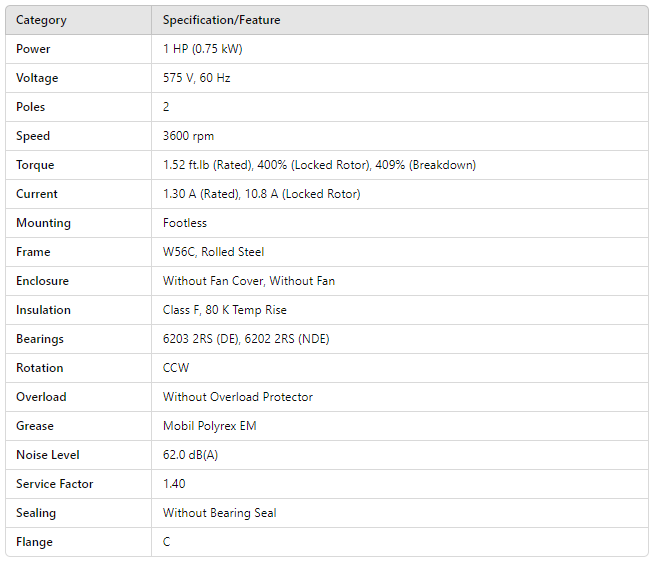 KO000502W01DOE, Rolled Steel Jet Pump - C type Premium Efficiency 1Hp 3450 Rpm 2P W56C 3Ph 575 V 60 Hz IC01 - ODP - Footless