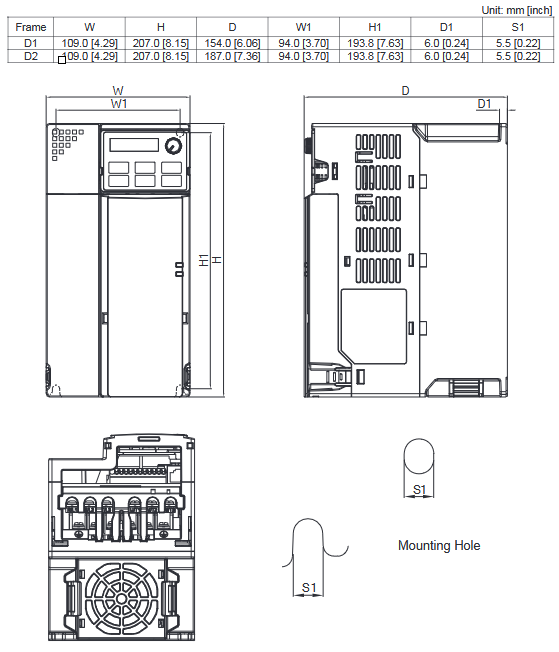 - 575Vac 3-phase input, 575Vac 3-phase output (HD 1 ~ 10HP) |