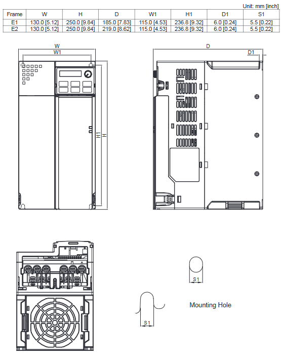 - 575Vac 3-phase input, 575Vac 3-phase output (HD 1 ~ 10HP) |