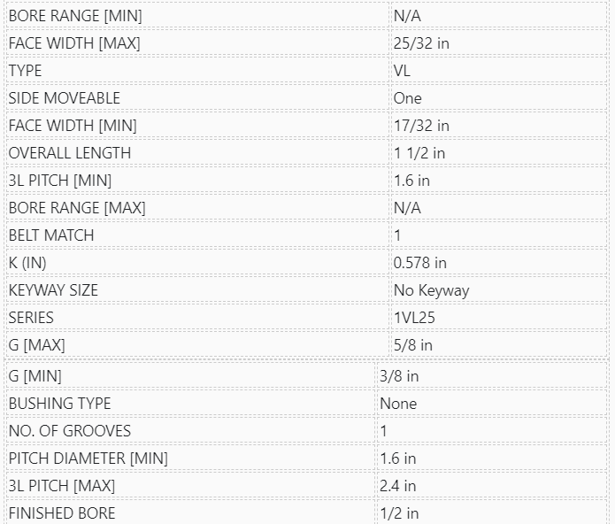 MVL25, Maska, Adjustable Pulleys, O.D 2.5'', 1VL25, BROWNING, MULTI BORE I.D