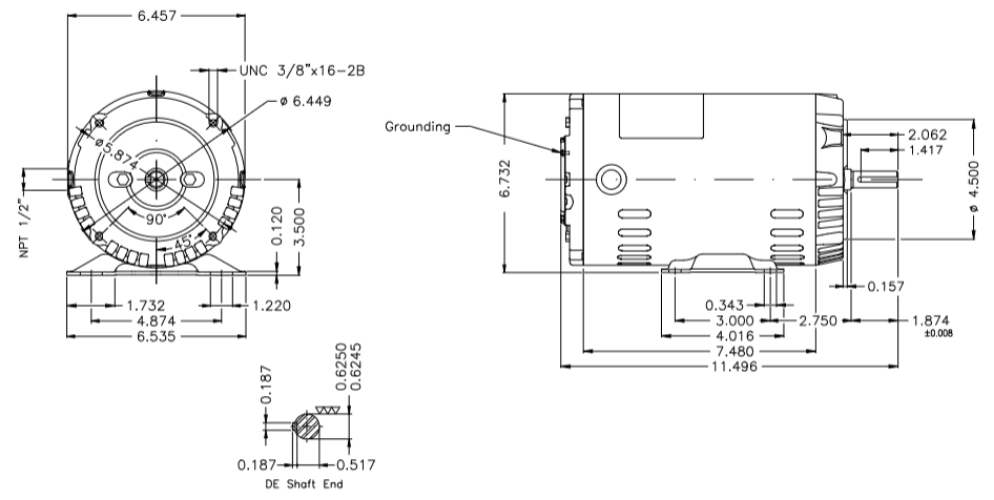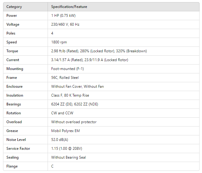 OC000404W01DOE, Rolled Steel Premium Efficiency 1Hp 1760 Rpm 4P 56C 3Ph 230/460//190-220/380-415 V 60 Hz IC01 - ODP - Foot-mounted