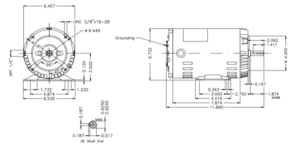 OC001502W01DOE, Rolled Steel Premium Efficiency 1.5Hp 3510 Rpm 2P 56C 3Ph 575 V 60 Hz IC01 - ODP - Foot-mounted