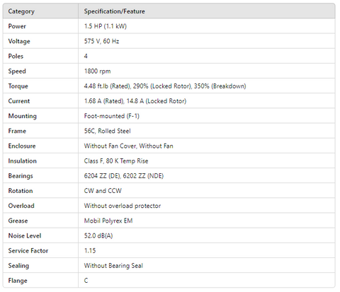 OC001504W01DOE, Rolled Steel Premium Efficiency 1.5Hp 1760 Rpm 4P 56C 3Ph 575 V 60 Hz IC01 - ODP - Foot-mounted