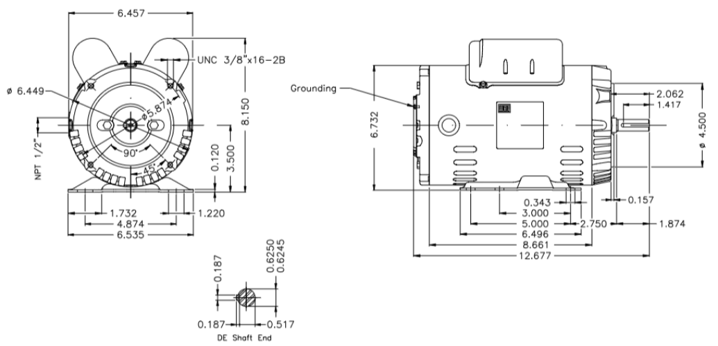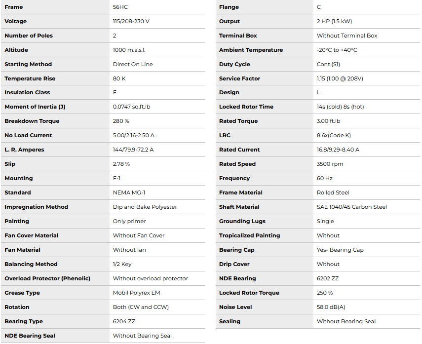 OC002102W01DOE, Rolled Steel 2Hp 3500 Rpm 2P 56HC 1Ph 115/208-230 V 60 Hz IC01 - ODP - Foot-mounted