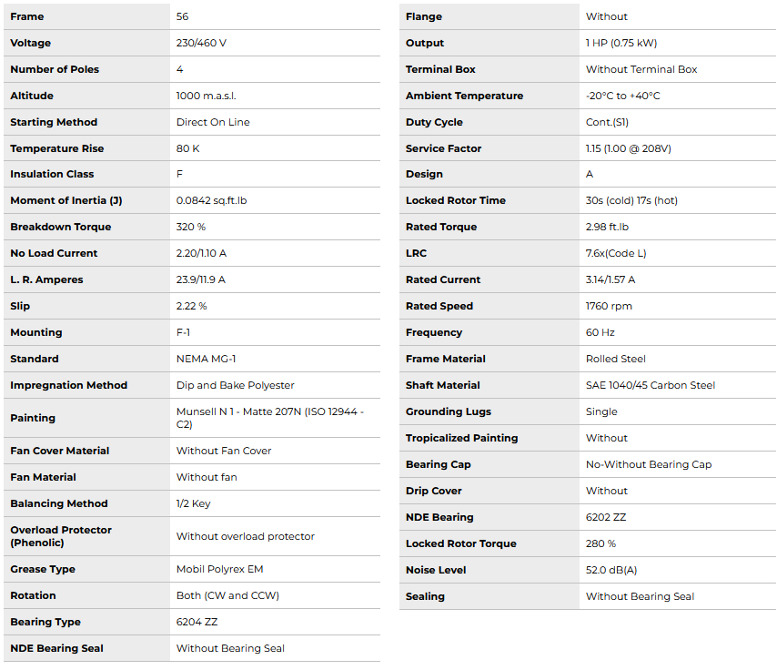 OF000404W01DOE, Rolled Steel Premium Efficiency 1Hp 1760 Rpm 4P 56 3Ph 230/460//190-220/380-415 V 60 Hz IC01 - ODP - Foot-mounted