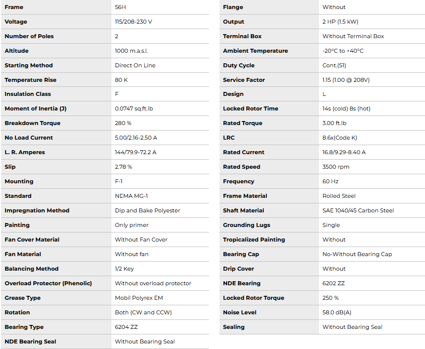 OF002102W01DOE,  Rolled Steel 2Hp 3500 Rpm 2P 56H 1Ph 115/208-230 V 60 Hz IC01 - ODP - Foot-mounted