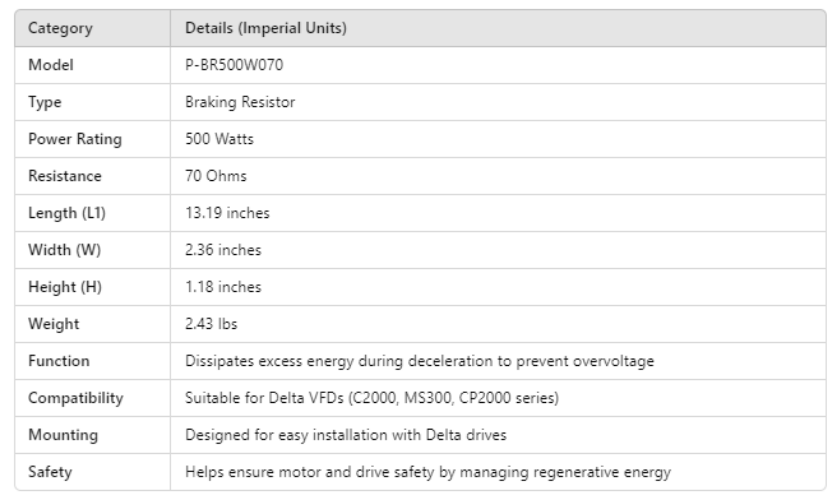 P-BR500W070, Braking Resistor 70 OHM 500W