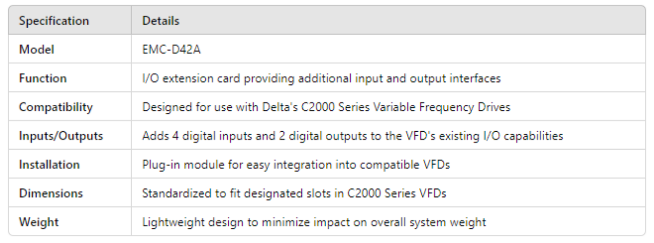 P-EMC-D42A, Acc., Vfd-C2000, Io Extension Card, (4DI/2DO), Dc 24v is backordered and will ship as soon as it is back in stock.