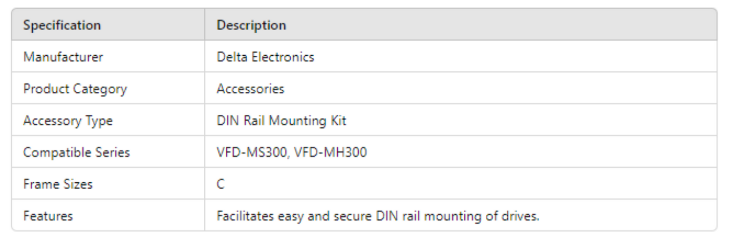 P-MKM-DRC, VFD-MH/MS300, DIN Rail Kit, Frame C