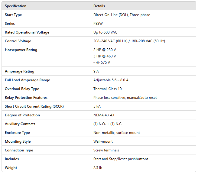 PESW Series Enclosed Starters