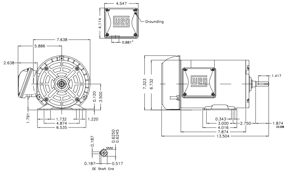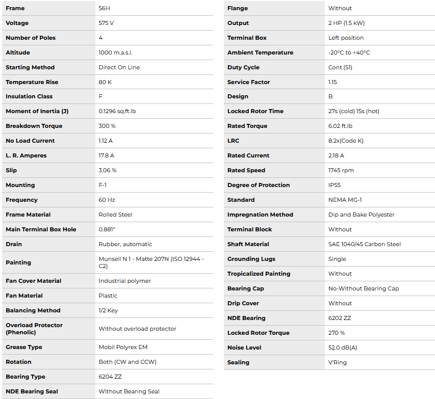 Torque 6.02 ft.lb (Rated), 270% (Locked Rotor), 300% (Breakdown)