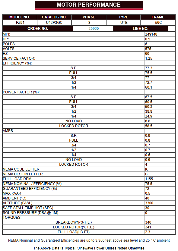 Efficiency: NEMA Nominal 75.5%