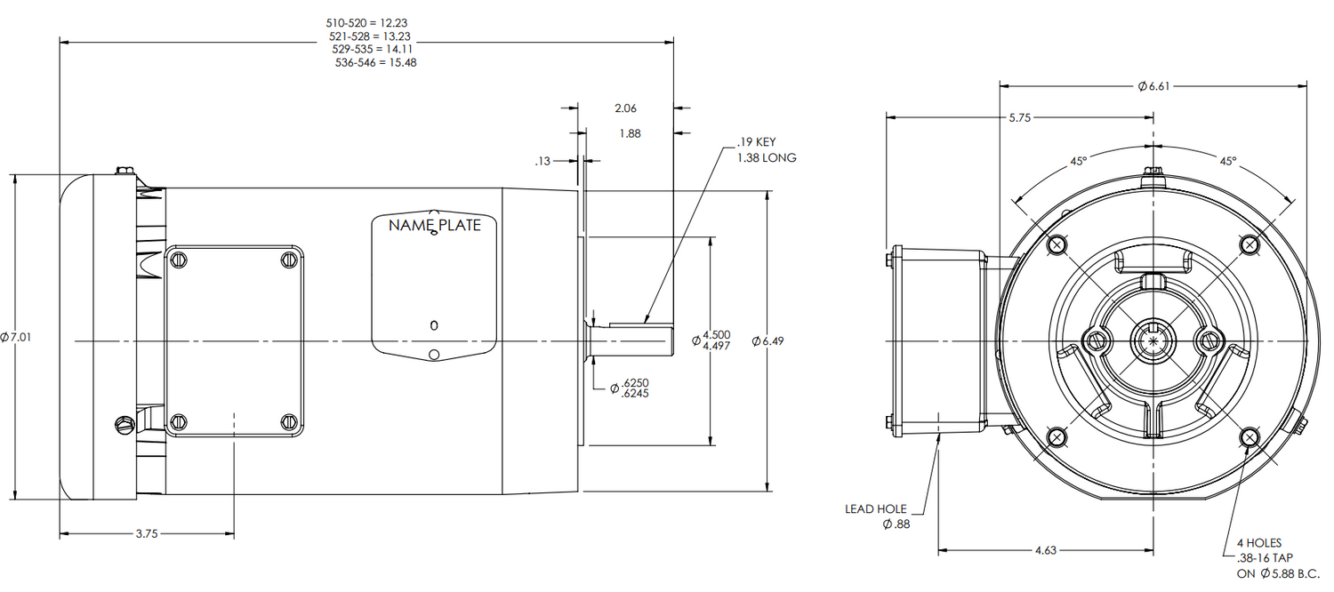 VEM3538, Baldor, 1/2 Hp, 1720 Rpm, 230/460V,35J302G155,TEFC,Round Body, 34A063R706