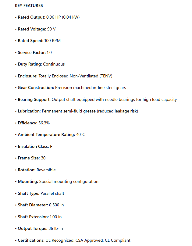 M1125004.00, Parallel Shaft Gearmotor, 0.06Hp, 90 V, 100 RPM, 30 Frame, TENV, 985.626H