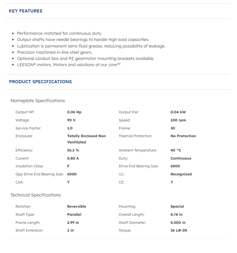 M1125004.00, Parallel Shaft Gearmotor, 0.06Hp, 90 V, 100 RPM, 30 Frame, TENV, 985.626H is backordered and will ship as soon as it is back in stock.