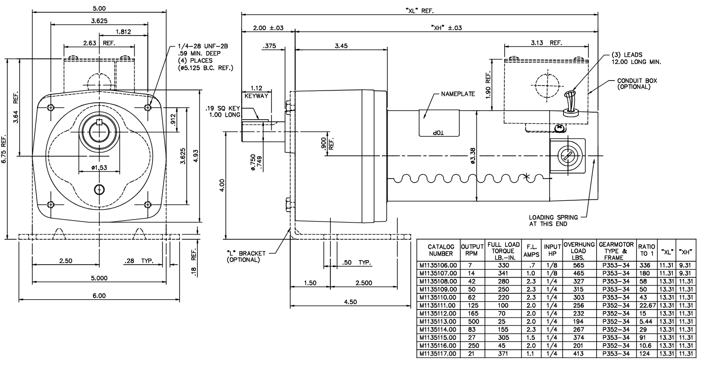 Gearing Standard: AGMA Class 9 (Rated for 200% Momentary Shock Load)