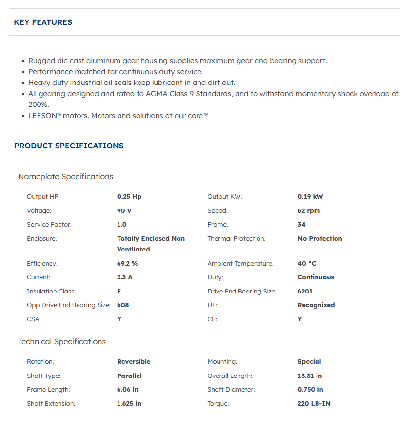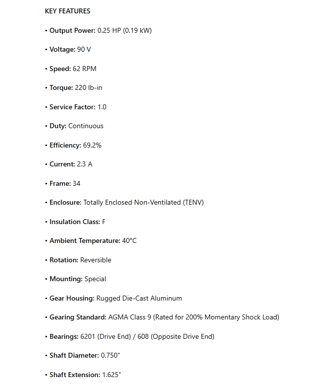 Output Power: 0.25 HP (0.19 kW)