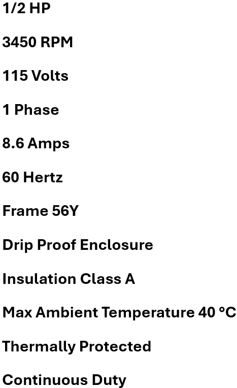 1403002453, Franklin Electrics, 1/2Hp, 3450 Rpm, 115 Volts, Frame 56Y,