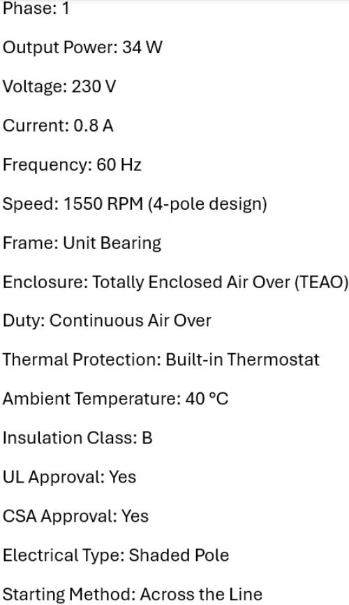 • Electrical Type: Shaded Pole