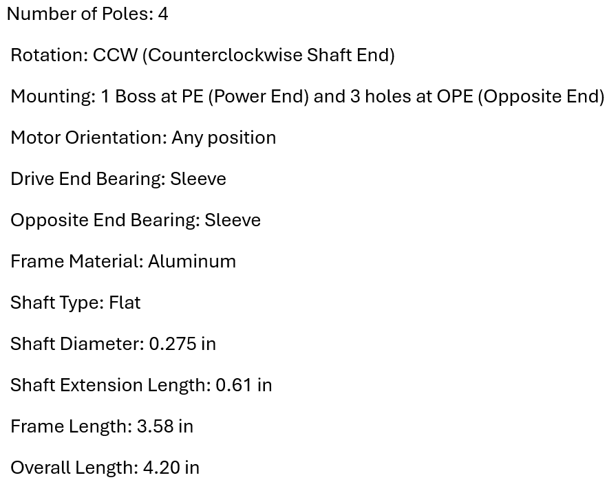 • Shaft Diameter: 0.275 in