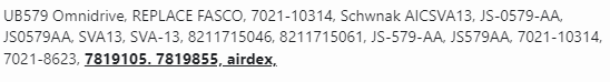 UB579 Omnidrive, REPLACE FASCO, 7021-10314, Schwnak AICSVA13, JS-0579-AA, JS0579AA, SVA13, SVA-13, 8211715046, 8211715061, JS-579-AA, JS579AA, 7021-10314, 7021-8623, 7819105. 7819855, airdex,