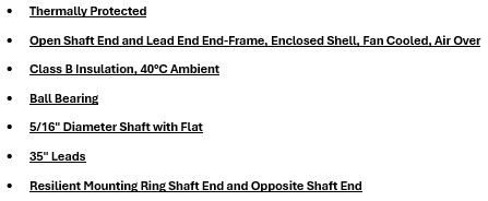 • Open Shaft End and Lead End End-Frame, Enclosed Shell, Fan Cooled, Air Over