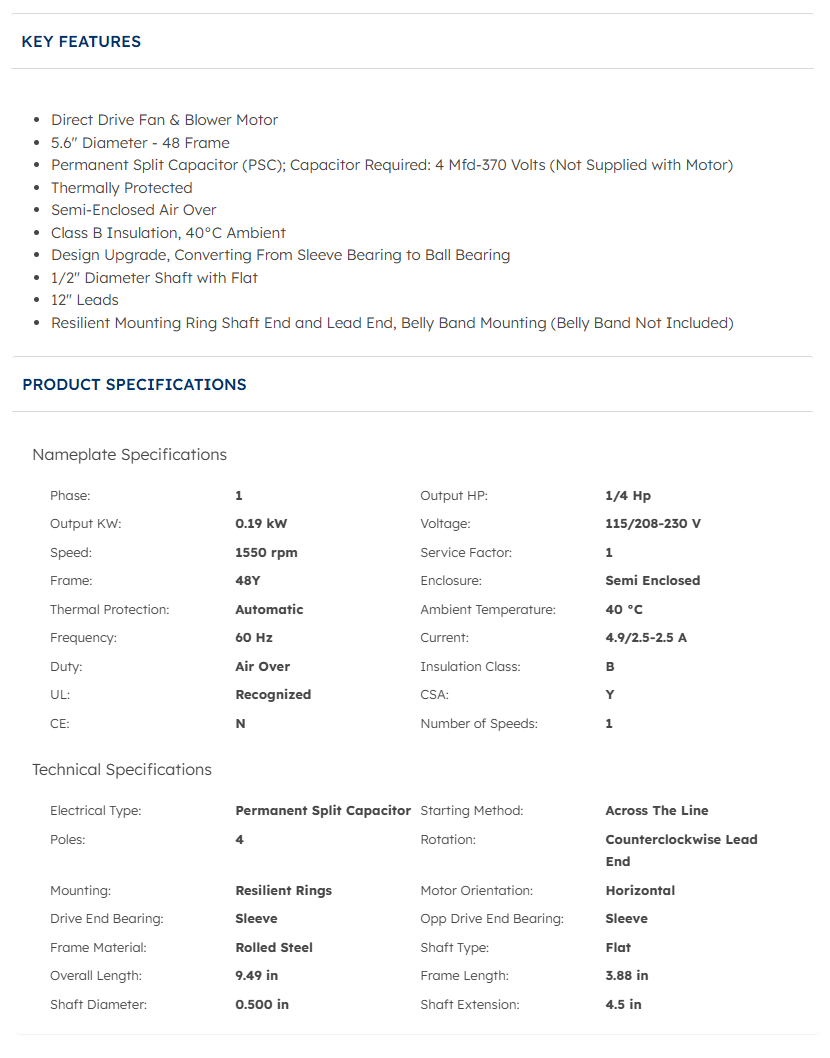 Motor Type: Direct Drive Fan & Blower Motor