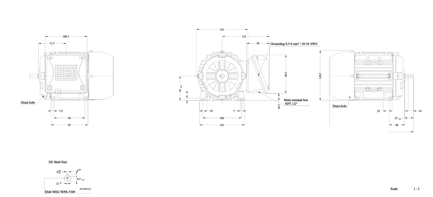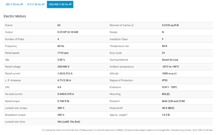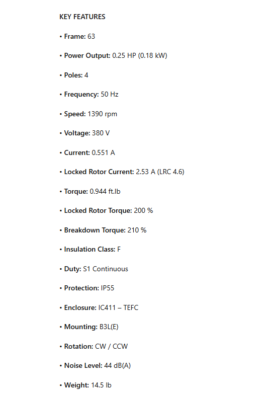 13982681, Multimounting High Efficiency, 1/4Hp, 1800 RPM, 230/460V // 280-145V, 3Ph, Frame 63, TEFC, IP55, MC.2540463-V, Weg,