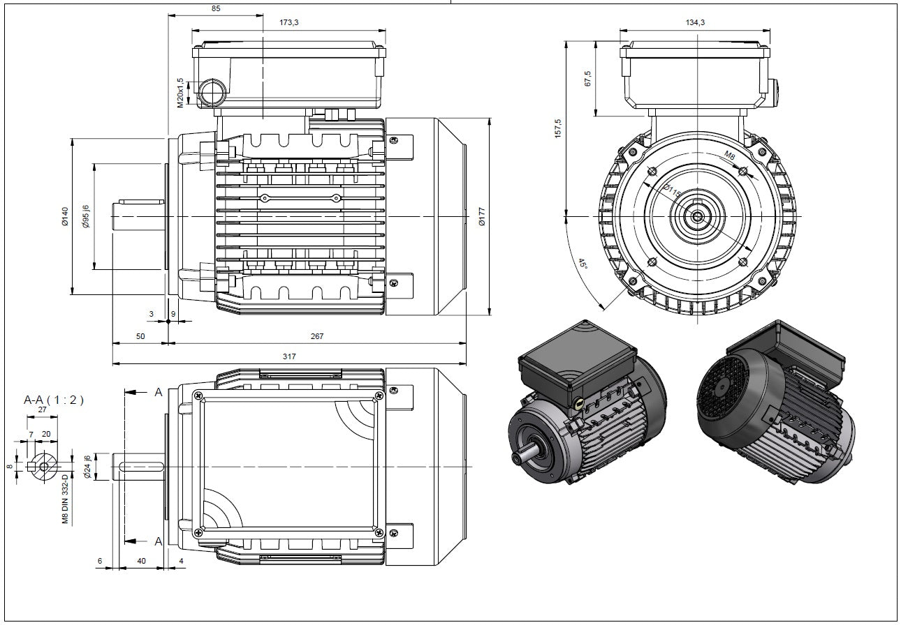 • Enclosure: TEFC (Totally Enclosed Fan Cooled)