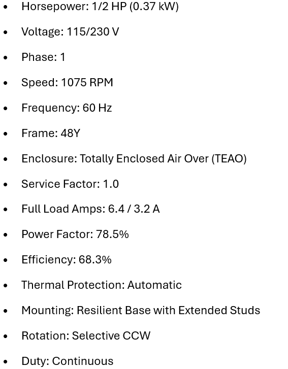 X029, Leeson, 1/2Hp, 1075 Rpm, 115-230V, Frame:48Y, Teao, 48A11T2023D,