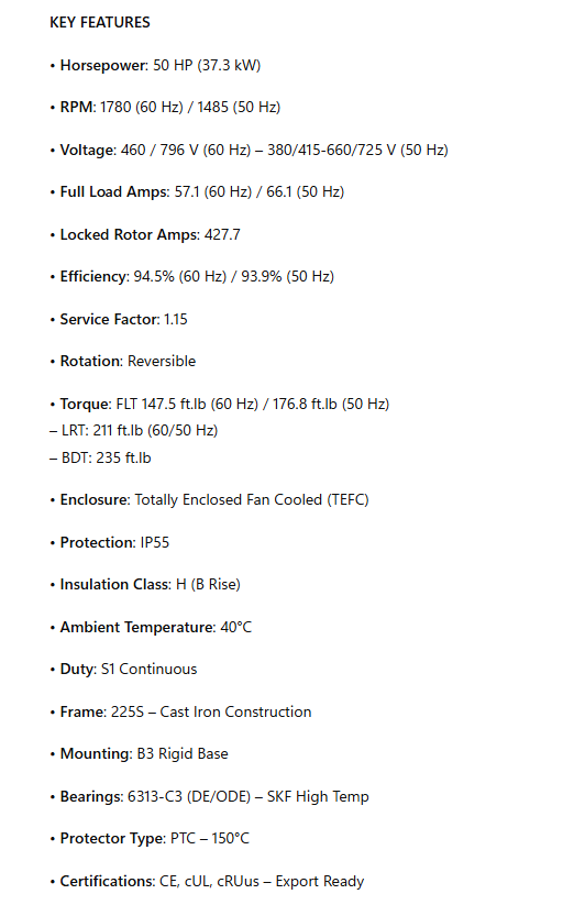 Horsepower: 50 HP (37.3 kW)