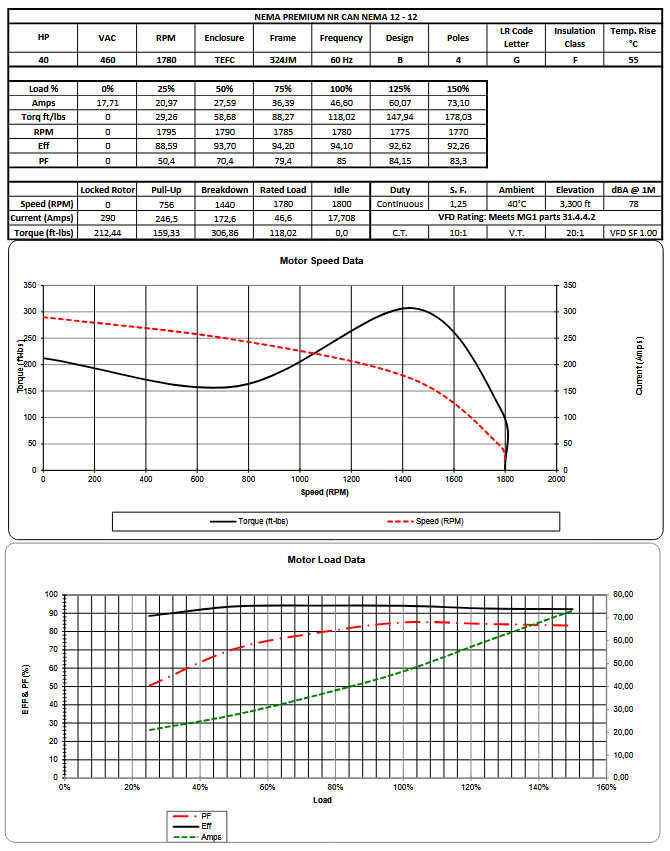 • Voltage: 230/460 V, 3 Phase, 60 Hz