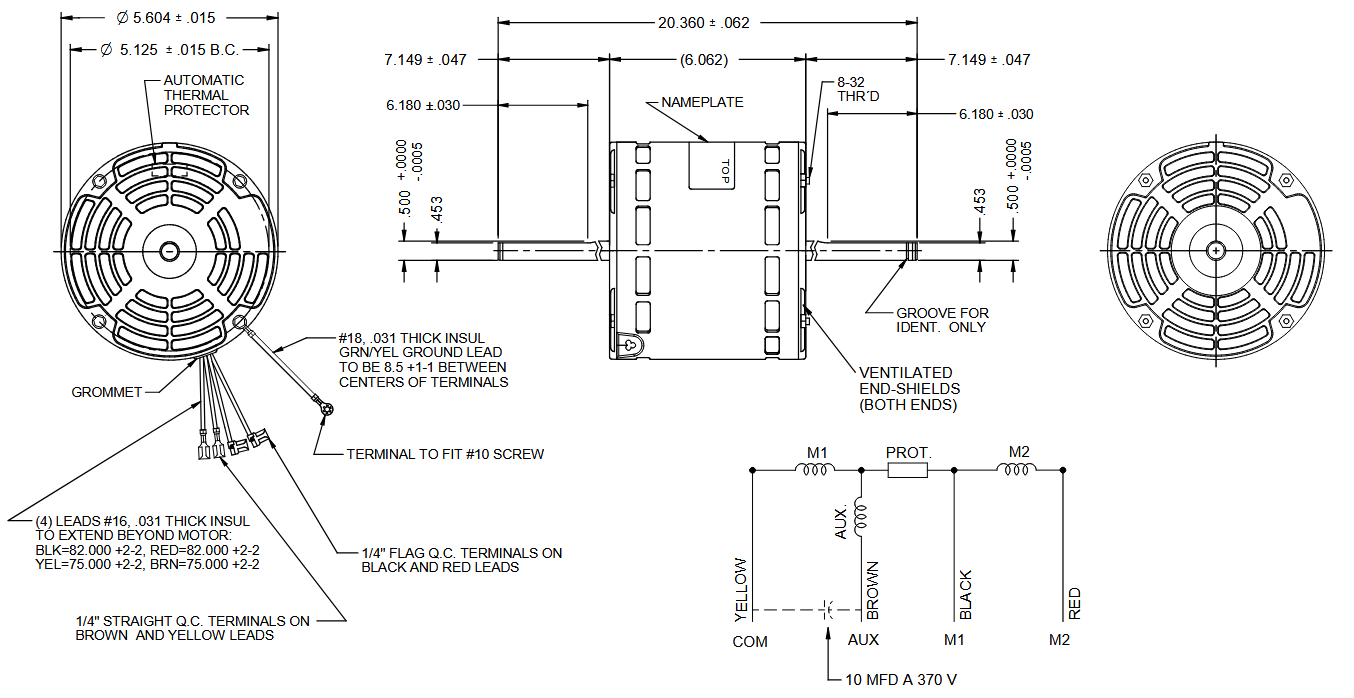 • Capacitor Included: 10 MFD – 370 V