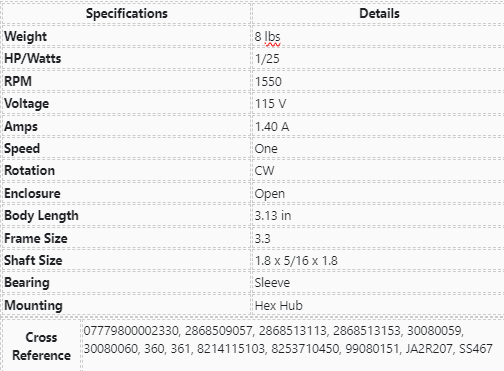 O1-R467, Rotom, 0.4Hp, 1 Phase, 1550 Rpm, 120 Volts, Enclosure Open,